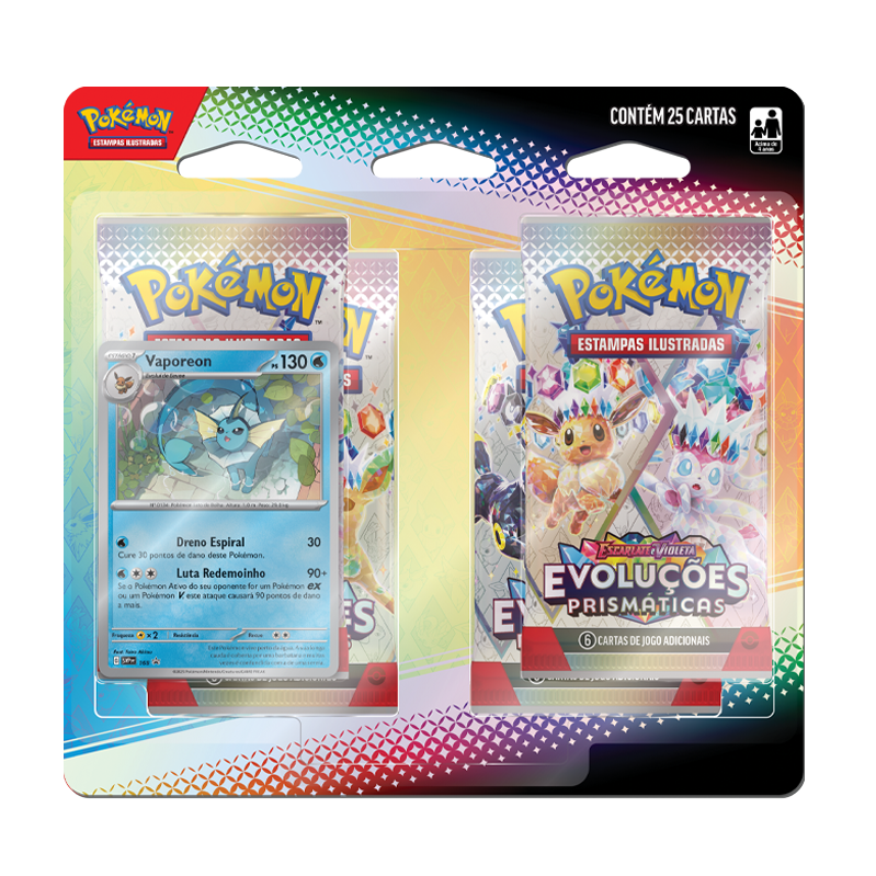 Com quatro pacotes de booster da coleção Evoluções Prismáticas, o blister oferece ótimas chances de encontrar Pokémon poderosos, cartas raras e combinações que podem transformar suas partidas. Além disso, acompanha uma carta holográfica promocional especial de Flareon, Vaporeon ou Jolteon, tornando o produto ainda mais atrativo para colecionadores e fãs das evoluções de Eevee. Para completar, inclui uma carta-código que permite resgatar conteúdos no Pokémon Estampas Ilustradas Online, integrando a experiência física e digital. Produto oficial em português, ideal para jogar, colecionar ou presentear.