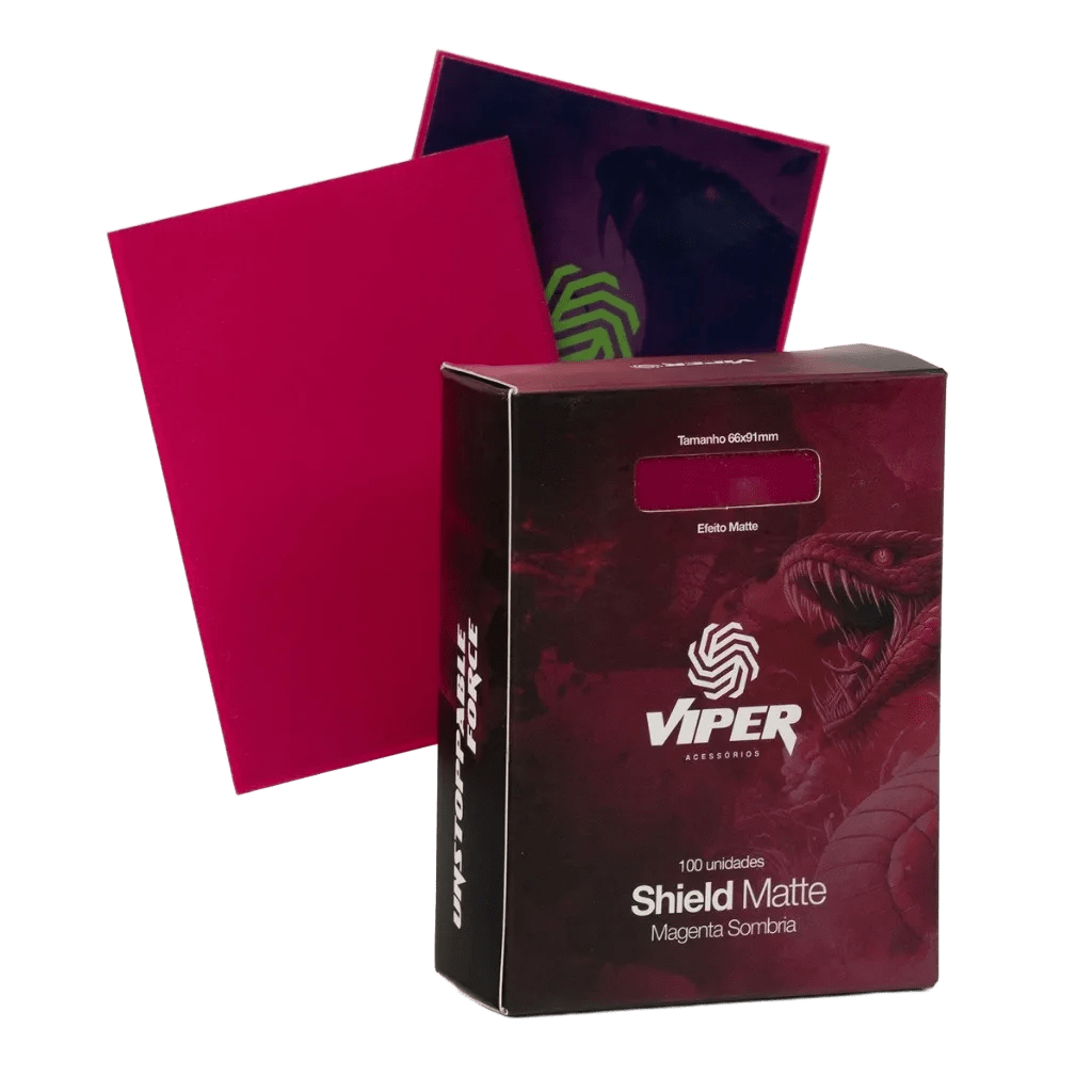 Os sleeves Shield Matte Viper são a escolha ideal para proteger suas cartas no formato Standard com qualidade e estilo. Com abertura na parte superior e acabamento matte no verso, garantem firmeza e conforto durante o embaralhamento, evitando que as cartas deslizem. A parte frontal é transparente, preservando a arte original das cartas, enquanto o verso colorido adiciona personalidade à sua coleção. Compatíveis com jogos como Magic: The Gathering, Pokémon, One Piece, Star Wars, Flesh and Blood, Lorcana e Altered. A embalagem acompanha cartão com janela transparente em plástico, permitindo a visualização do produto antes do uso.